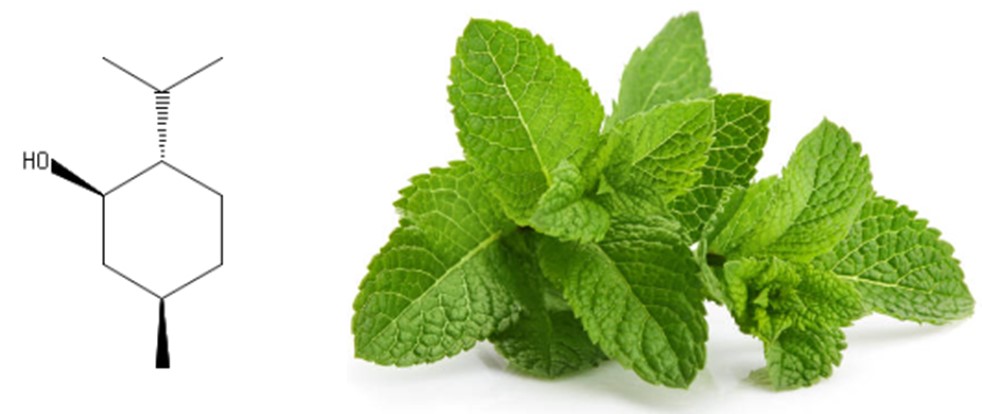 メントールが皮膚に触れると冷感を人に与えると考えられています。これは人の皮膚に存在する冷たさを感じる部分(温度感受性TRPチャネル)が刺激され、脳に信号が届けられ、冷たい、涼しいと感じます。