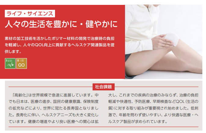 「正の影響の強化」においては、「ライフ・コミュニケーション・サステナビリティでの価値提供」などが挙げられ、SDGs3、12などの向上を説明しています。具体的にライフの分野においては次のようなアナウンスがされています。