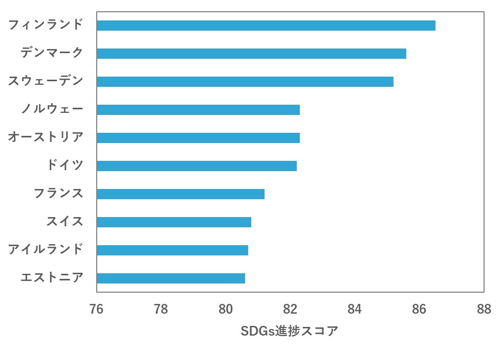 今回のレポートにおける国ごとのSDGs進捗ランキングでは、前年同様、フィンランドが1位となりました。2位は前年3位のデンマーク、3位は前年2位のスウェーデンとなっており、ベスト3の顔ぶれは変わらず北欧勢が独占しています。