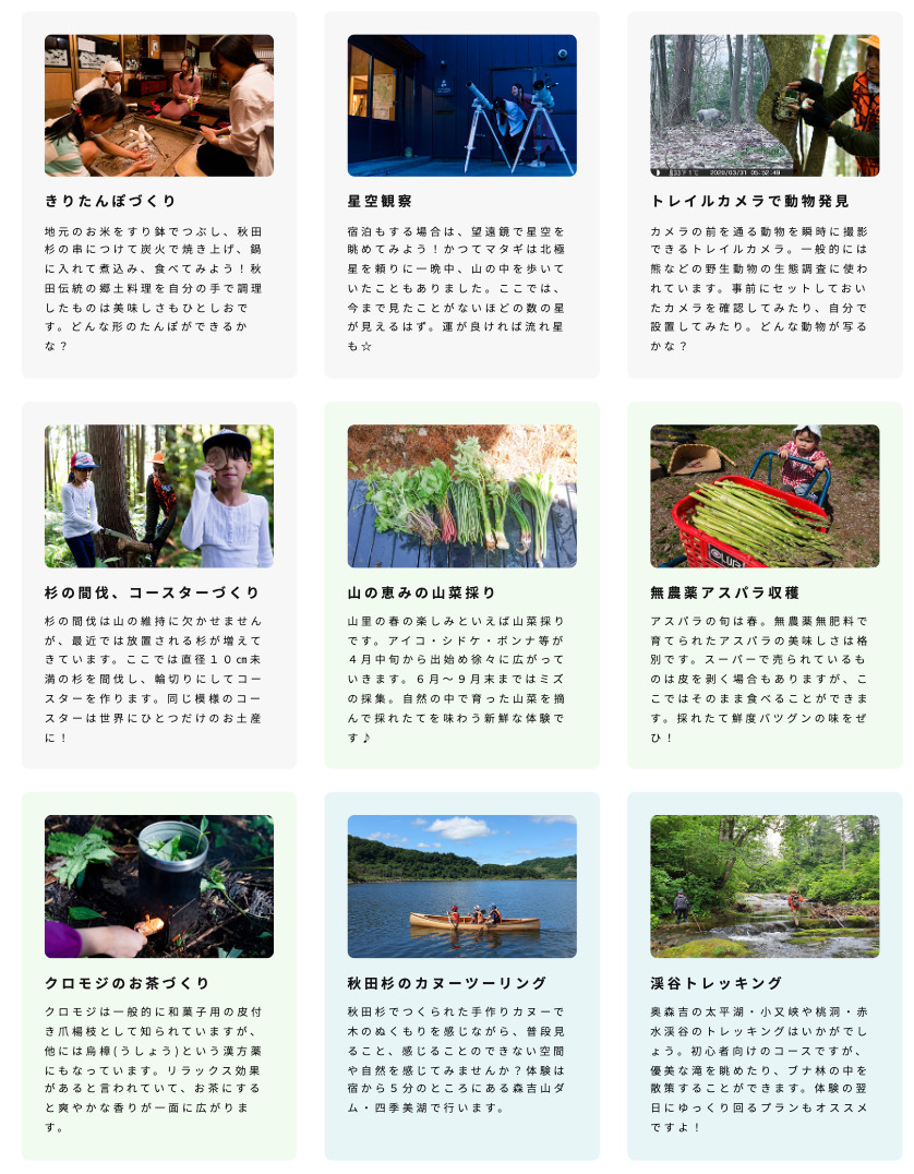 秋田の文化を感じる内容をはじめ、マタギ・自然・地球を感じることのできる楽しみなプログラムの数々。下記の他にも多数のプログラムがありますので、ぜひ一度ご覧を!