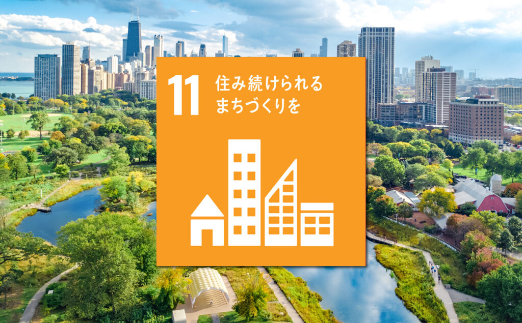 SDGs11とは「住み続けられるまちづくりを」というキャッチフレーズのもと、全ての人が安全・快適に暮らせる環境をつくることが目的になっています。まちには、住居、オフィス、商業施設、公共施設などが集まり、大勢の人が住んでいます。そこは経済や文化の中心となり、教育や金融などの社会に必要な機能が備わっています。
