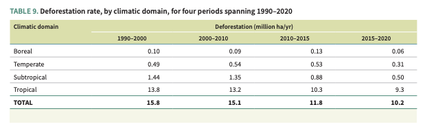 こうしてみると、例えば2015年から2020年の5年間で、各気候帯では次の森林減少率になります。