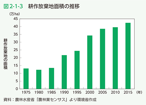 食糧の生産性は技術の発展により、改善する余地はありますが、耕作放棄地の増加は食糧生産する土台の減少を意味するので、食料自給率の低下を招く可能性があり、島国の日本にとっては注意すべき課題です。