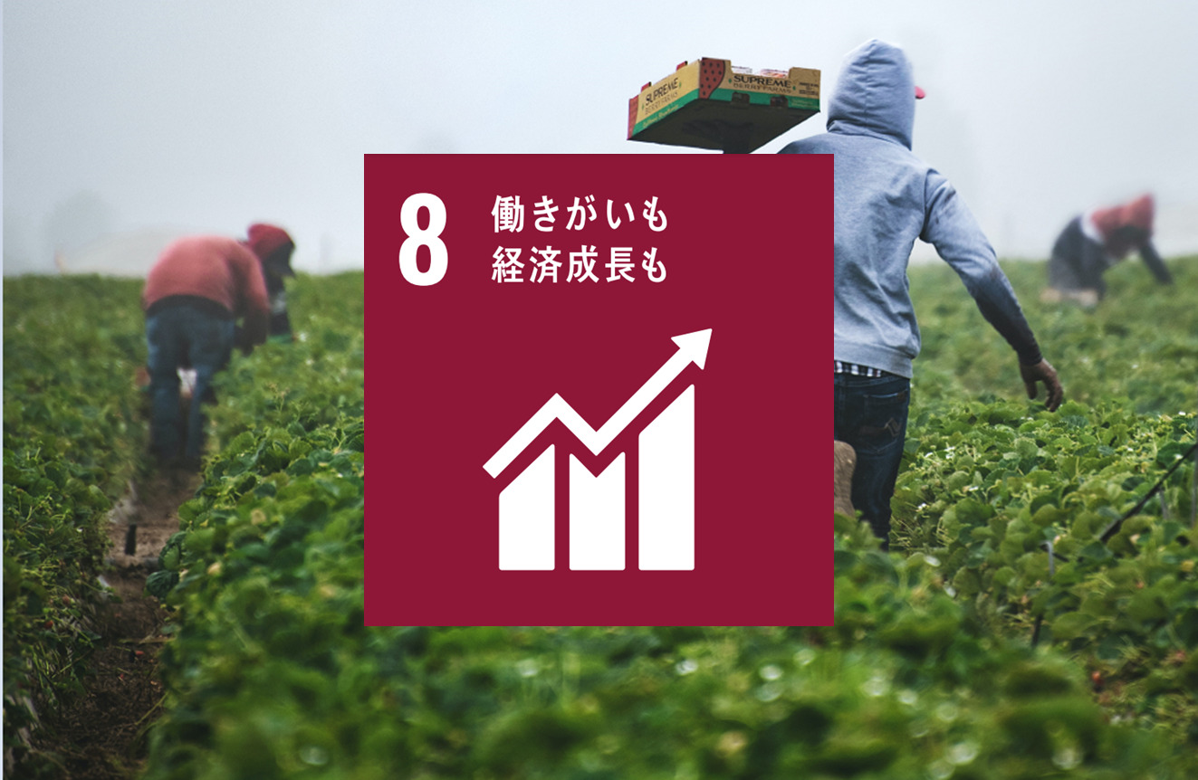 持続可能な開発目標(SDGs)のSDGs8「働きがいも 経済成長も」は、すべての人が働きがいと十分な収入のある仕事につき、持続可能な経済成長を進めることが目標です。